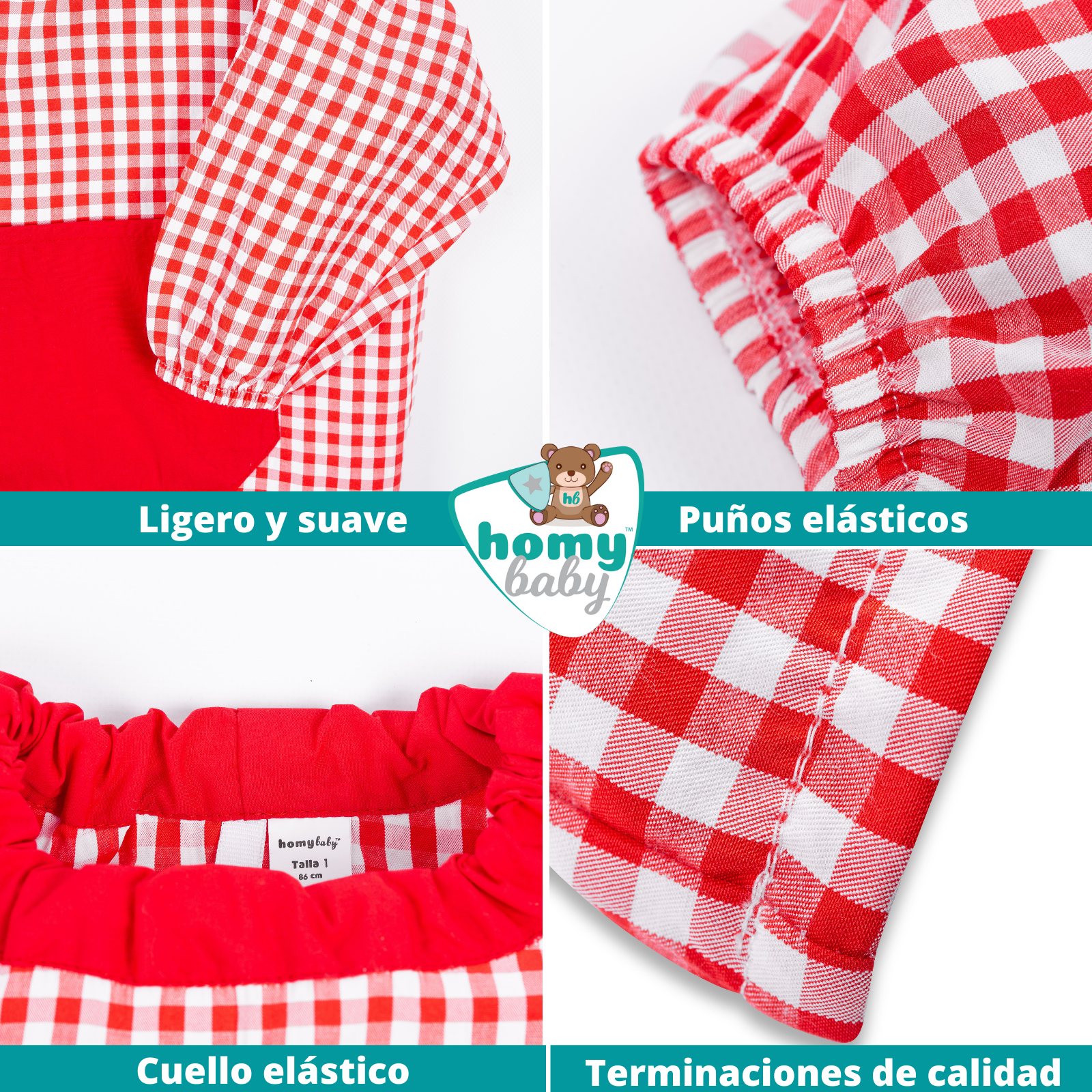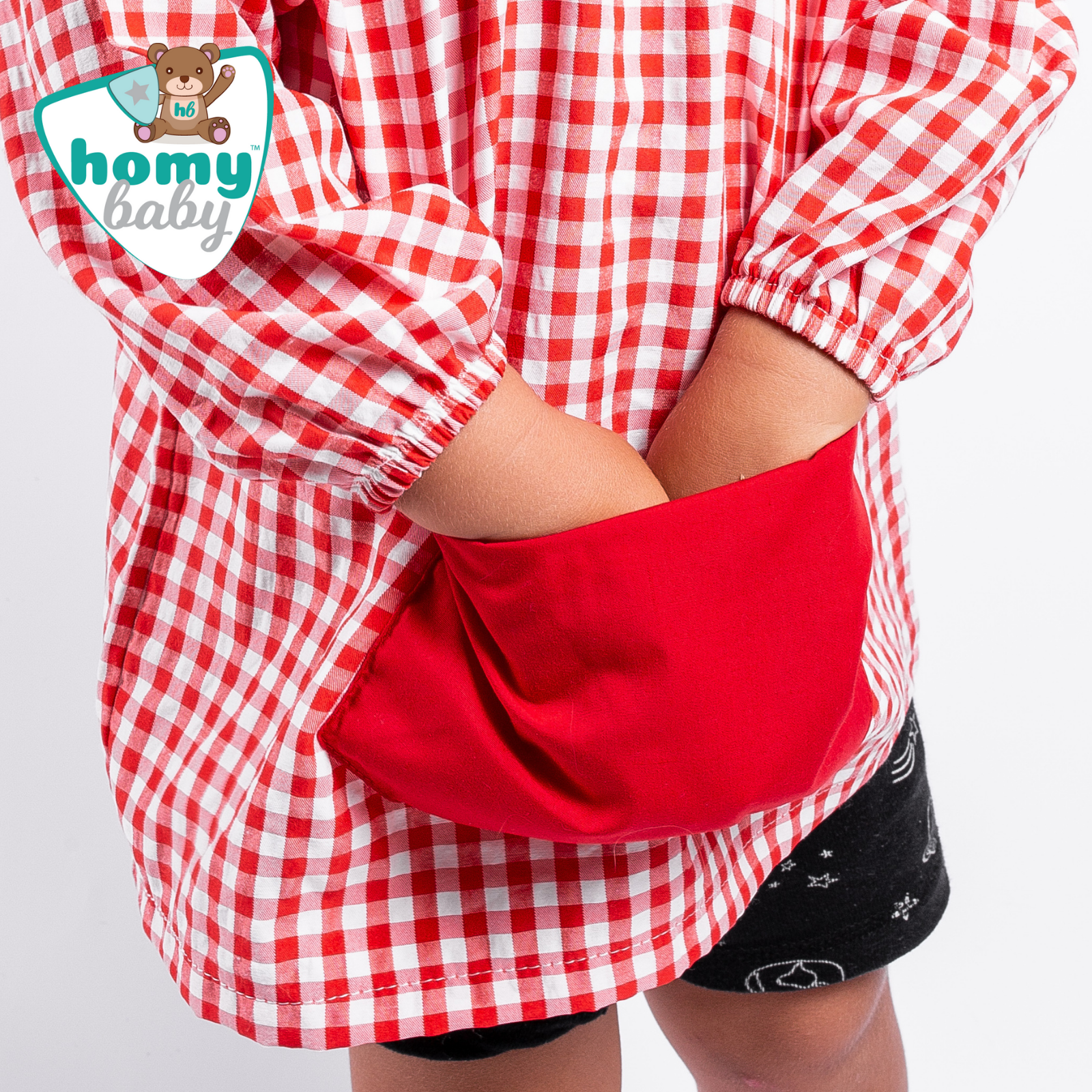 La bata tiene un tejido que gana suavidad con los lavados, es apto para lavar a máquina. Su composición es 65% Poliéster y 35% Algodón. Es muy fácil de poner y es unisex para niños y niñas. Estampado tipo vichy a juego con cualquier tipo y color de ropa. El baby es cómodo para su hijo, tejido suave que pesa poco para utilizarlo en el día a día de la etapa infantil.