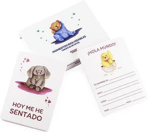 - CALIDAD CARTAS BEBE 🗂 Nuestra caja de tarjetas de hitos están diseñadas en España con los mejores materiales y calidades, tanto de diseño como de impresión. Sus dibujos son unisex y podrá reutilizar las tarjetas tantas veces como desee.
